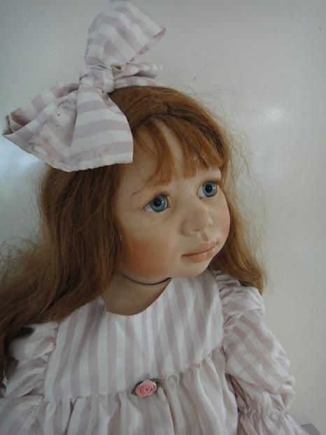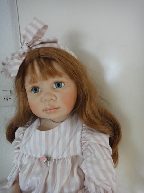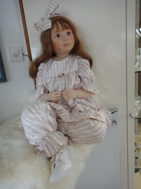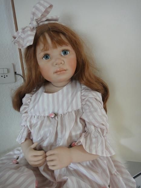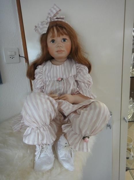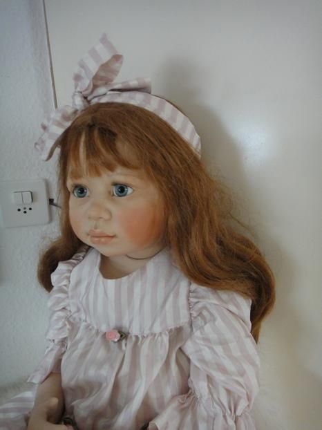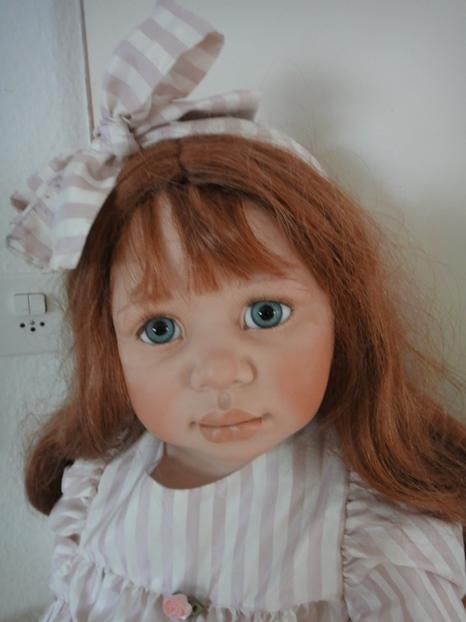 Sie ist ein wunderbares CO Puppenkind von der Künstlerin. Mit ihren grossen blauen Augen, betrachtet sie ihr neuesZuhause. Sie ist mit ihren 97cm, ein grösseres COPuppenkind.