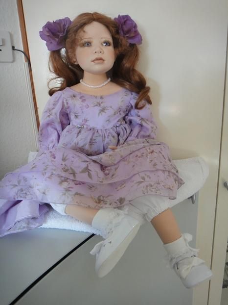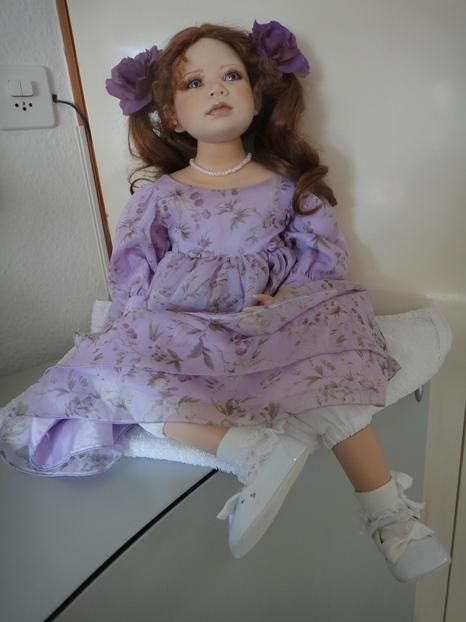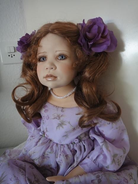 Freya, ist ein fröhliches CO-Mädchen und so süss mit ihren neckischen Schwänzchen auf dem Kopf die durch Rosen gehalten werden. Ein fein zurecht gemachtes Mädchen, mit Perlenkette, ihren weissen Schühchen und in ihrem besonders schönen Outfit, Original CO, in Fliederfarben.