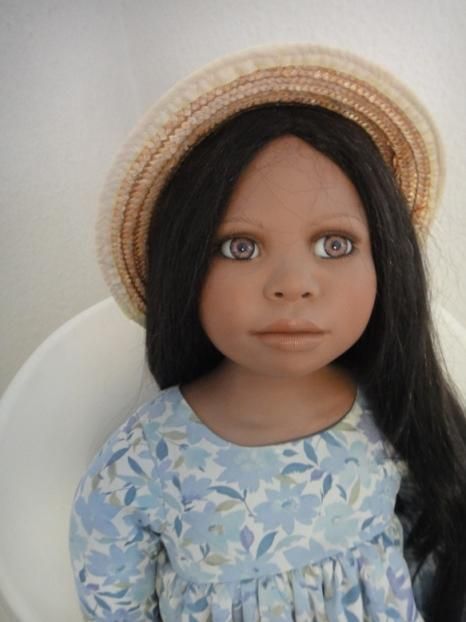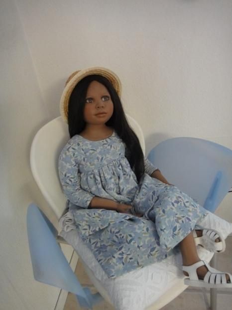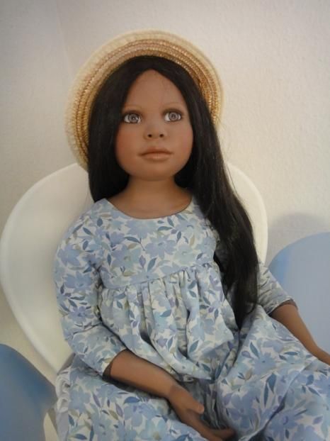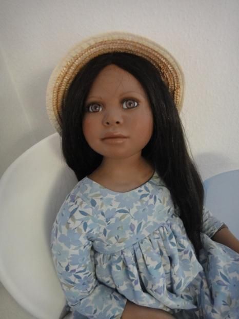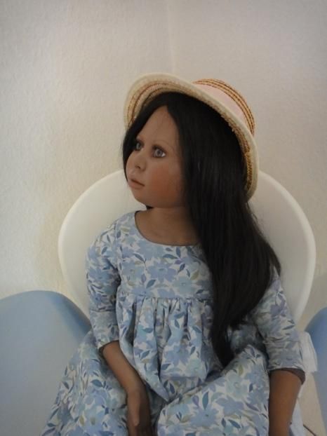 Sie ist eine dunkle, besondere Schönheit mit und ohne Sonnenhut, man könnte meinen, sie, weiss es auch ganz genau, Fotoshootings liebt sie sehr und ich freue mich so eine Schönheit zu besitzen. Sie ist mit ihren 97cm ein grösseres CO-Puppenkind.