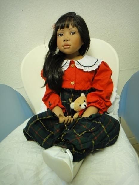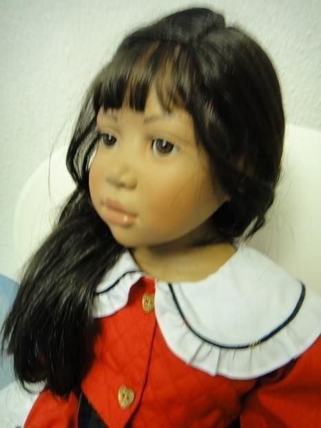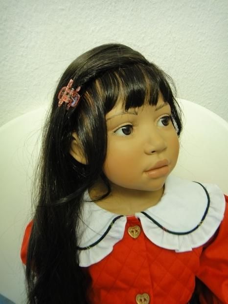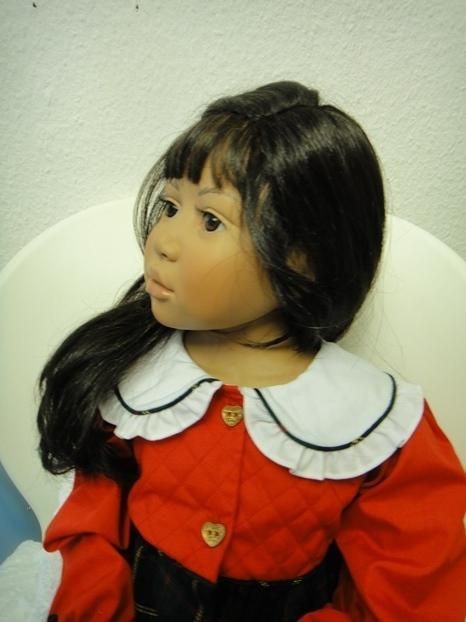 Suzie, ist der Prototyp von Christine Orange, ich konnte sie erwerben, was mich sehr freute. Suzie, ist sehr stolz auf ihr Zertifikat und die Unterschrift auf dem Körper, von der Puppenkünstlerin Chr. Orange persönlich, verfasst und unterschrieben.