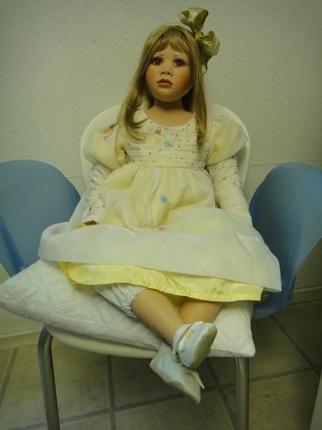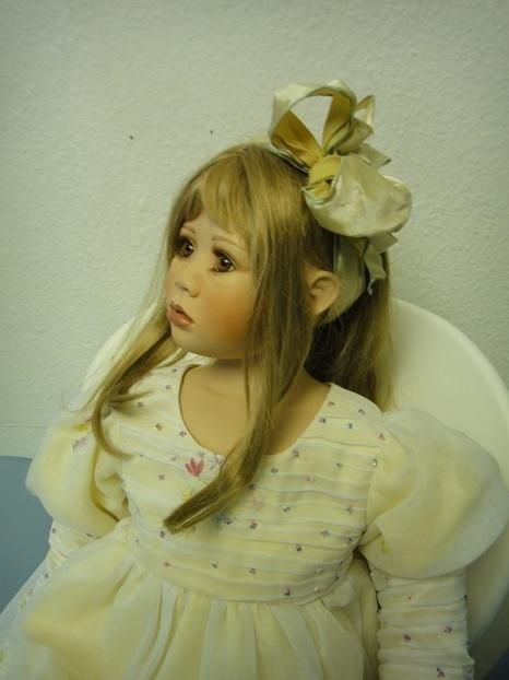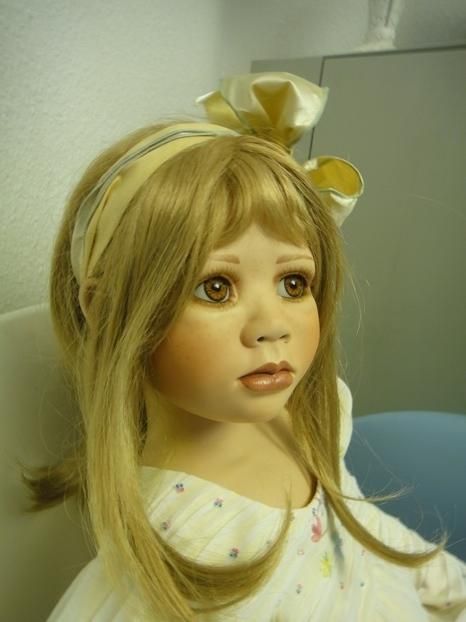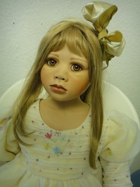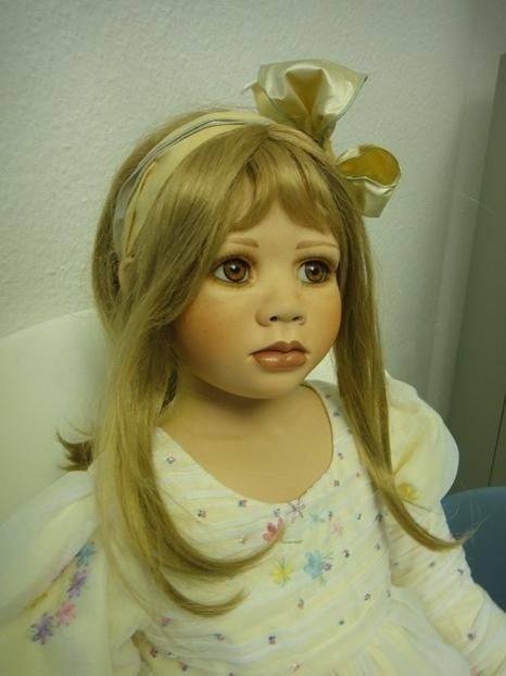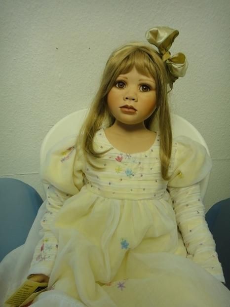 Bianca, ist eine limitierte Puppe von Christine Orange. Bianca limitiert, ist stolz, dass sie die handsignierte Unterschrift von Christine Orange, zusätzlich in ihrem Zertifikat hat. Bianca, trägt mit stolz ihr Kleidchen auf dem kleine Blümchen aufgestickt & Glasperlen, aufgenäht wurden. In ihrem schönen blonden Haar, hat sie ein schönes Band mit Schlaufe.