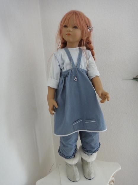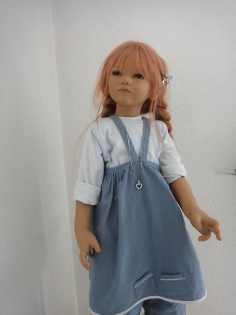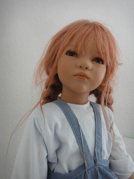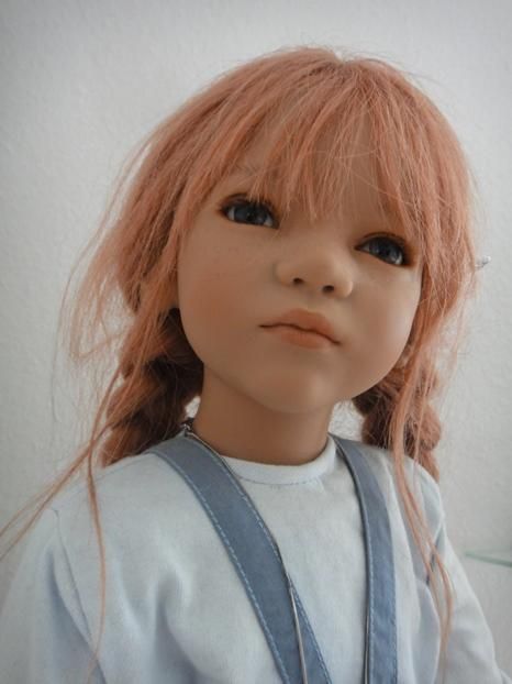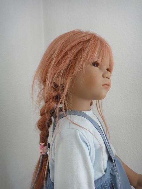 Silvi, von A. Himstedt ist ein Spielstrassen-Kind. Silvi, Sie ist 80 cm gross. Sie hat eine Perücke Menschenhaar, semi handgeknüpft. Sie hat mundgeblasene Glasaugen aus Deutschland & Sommersprossen.