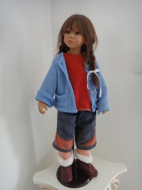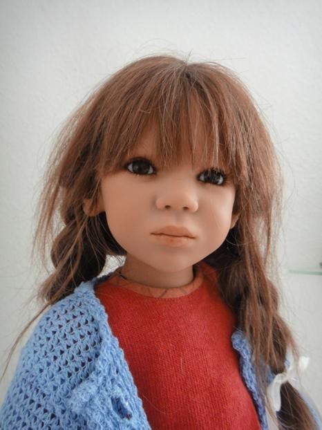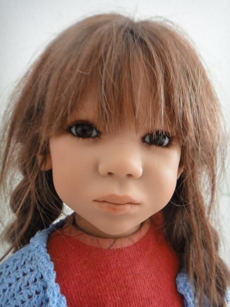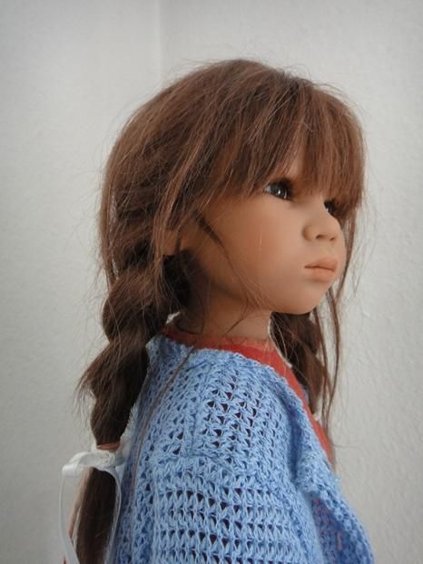 Ginni, von A. Himstedt ist ein Spielstrassen-Kind. Ginni, Sie ist 71 cm gross. Sie hat eine Perücke Menschenhaar, semi handgeknüpft. Sie hat mundgeblasene Glasaugen aus Deutschland.