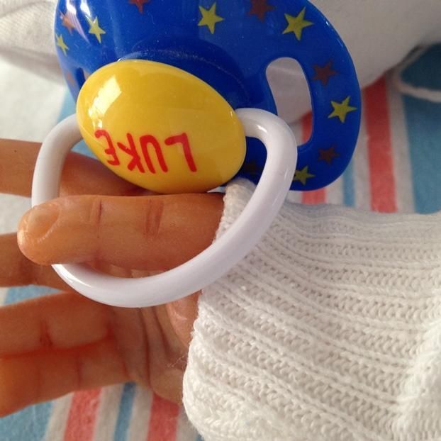 Luke, ist 48 cm gross, er hat die Grösse und das Gewicht eines richtigen Babys. Seine eingebrannten Haare sind rotbraun.