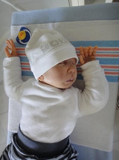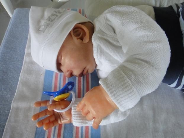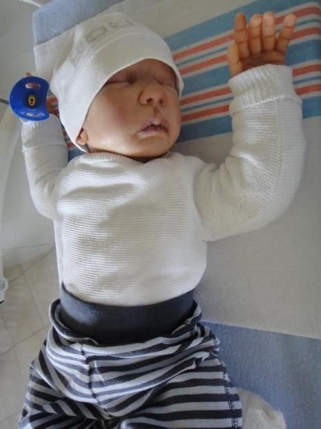 Luke, ist ein Polymer Clay Baby. Er wurde von einer amerikanischen Rebornartistin von Hand geformt, er ist ein Unikat und er kam direkt aus Amerika zu mir in die Schweiz.