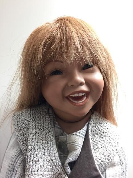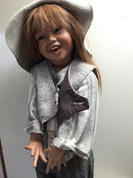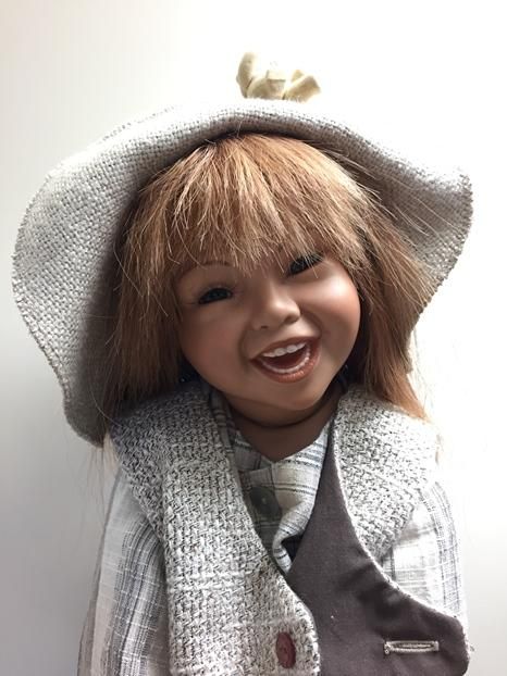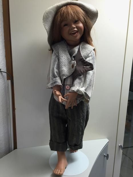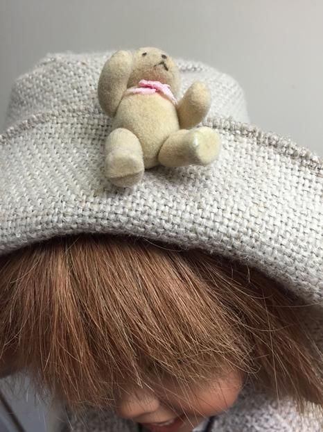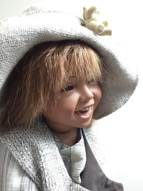 Meine Joy, ist 65 cm gross und hat eine handgearbeitete Perücke aus Echthaaren. Ihr Outfit ist ebenfalls handgearbeitet und wurde sehr sorgfältig für sie ausgesucht. Joy, zeigt sich fast nie ohne ihren Hut, weil sie sehr stolz ist auf das Bärchen das daran befestigt ist.