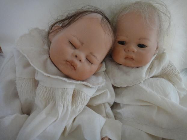 Zwei ganz zarte Geschöpfe sind meine Lisa und Sofie, von Nel Groothedde. Lisa wach & Sofie schlafend, wurden aus feinstem Biskuitporzellan hergestellt & von Hand bemalt.