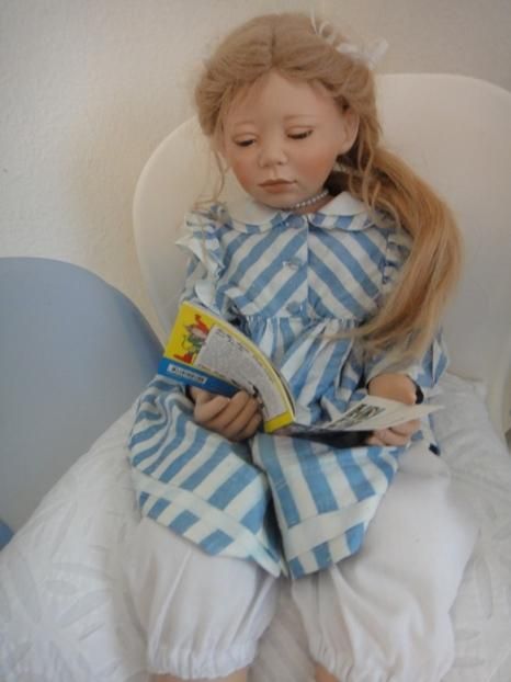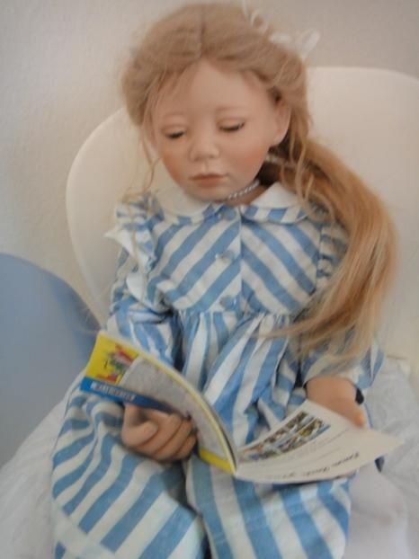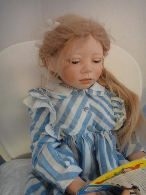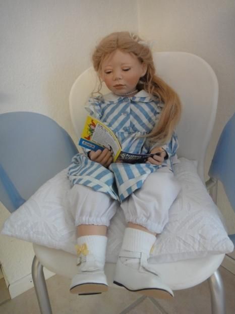 Sophie, ist 86 cm gross und das Besondere an ihr ist, dass sie wie ein lesendes Puppenmädchen modelliert wurde.