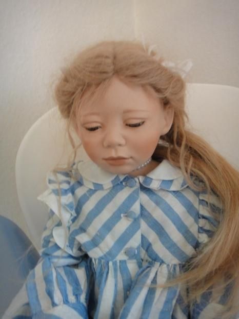 Sie sitzt mit ihrer Schwester Sophie (Prototyp) bei mir uns im Wintergarten. Sophie Original hat einen fest modellierten Kopf, im Gegensatz zu ihrer limitierten Schwester, deren Kopf beweglich ist.