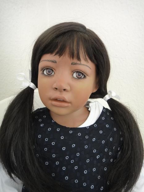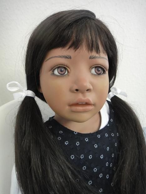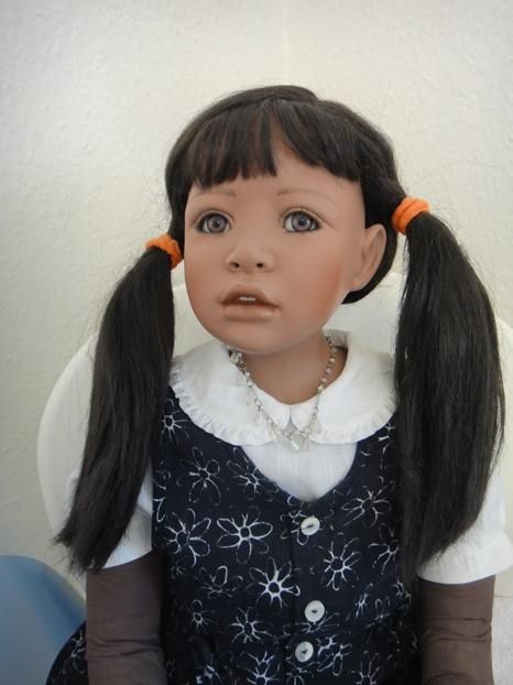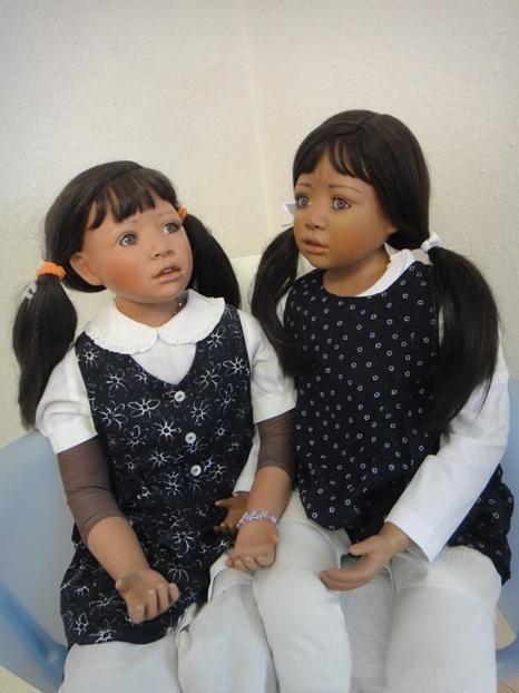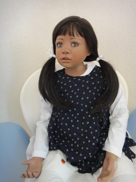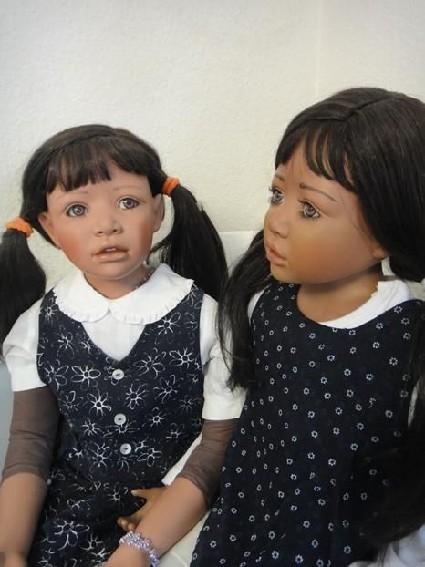 Meine Millie`s sind 97 cm gross & Sitzpuppen. Sie haben dunkle Haut, blaugrüne Augen & schwarze Haare. Ich habe die Millie`s umgezogen & ihnen ein Pampolina Kleid, als neues Outfit angezogen.