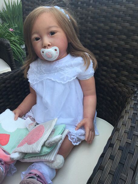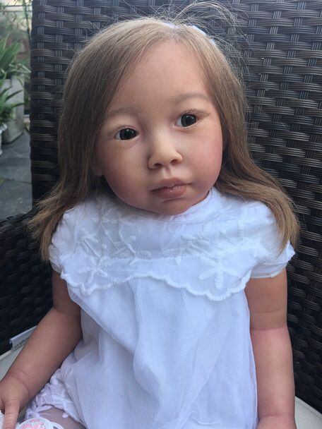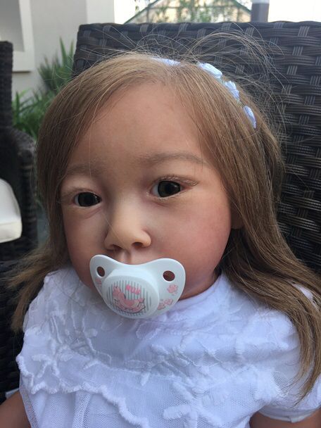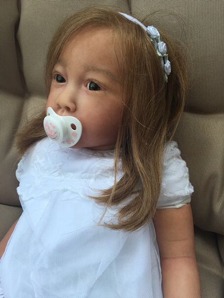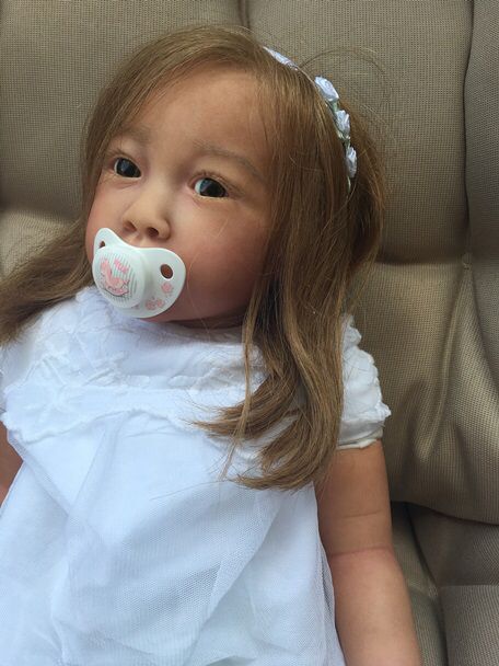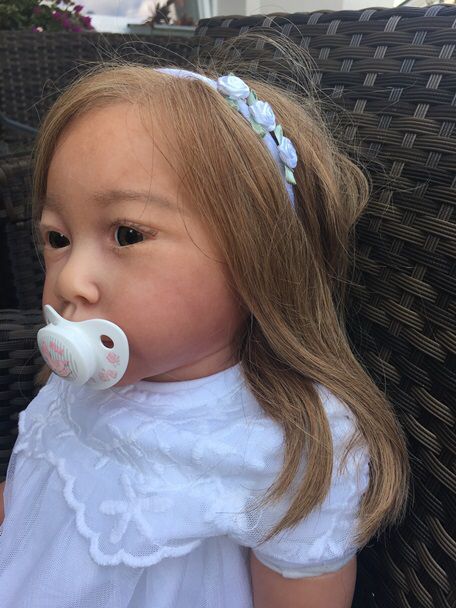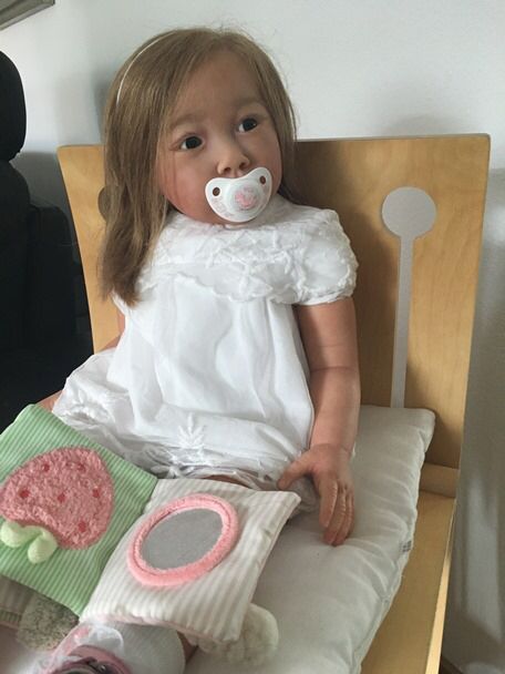 Chenoa, ist ein Reborn Toddler, gearbeitet von einer Rebornerin aus Deutschland die mich sofort faszinierte als ich alle ihre Rebörnchen auf Ihrer Website gesehen habe. Die Rebornerin hat Chenoa extra für mich nocheinmal rebornt, meine Freude war gross und das Ergebnis ist überwältigend. Ihre Arbeit beeindruckt mich sehr, da Chenoa von ihr sehr real gearbeitet wurde. Die süsse Chenoa sitzt bei uns im Wohnzimmer und wird immer wieder von unseren Gästen bewundert.